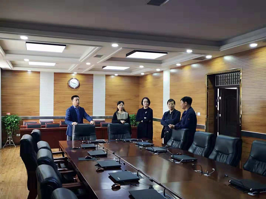 随后,潘广伟一行到郏县法院实地查看了办公大楼内办公用房和审判法庭的功能布局,询问了数字化审委会会议室和科技法庭建设情况,听取了情况介绍,详细了解了该院硬件设施设备、信息化建设和安检情况,并到干警活动室进行了参观。潘广伟对郏县法院的司法行政装备工作给予了充分肯定,并指出在工作中遇到的问题要加强与市中院、省高院相关部门沟通,及时解决系统运行中的软、硬件问题,保障审判工作顺利开展。