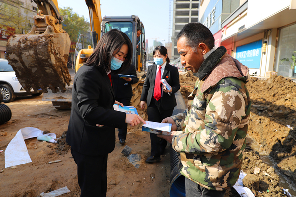 为认真贯彻落实上级法院关于根治农民工欠薪冬季专项活动的各项安排部署,12月6日上午,郏县法院党组成员、副院长韩晓带领劳动者权益保护合议庭成员一行来到建筑工地进行普法宣传,为农民工兄弟送去司法温暖。