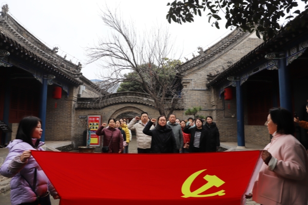 在教育基地内,全体党员干警面对鲜红的党旗,举起右拳,庄严宣誓。“我志愿加入中国共产党......”铿锵有力的誓词响彻全场,宣示了对党的忠诚和为司法事业奋斗终身的坚定信念。随后,全体干警进行合影留念,充分展现了郏县法院干警们干练自信,积极向上的精神风貌。